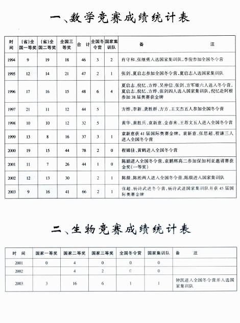 > 黄广中学数学、生物竞赛成绩统计表