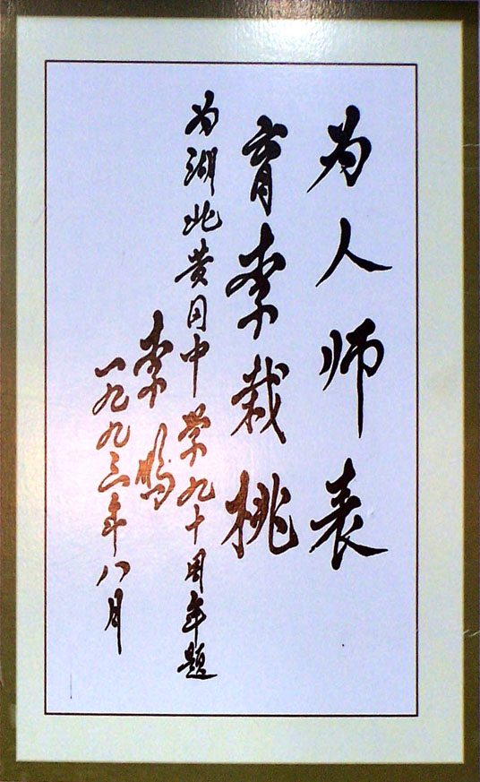 > 原中央政治局常委、国务院总理李鹏对黄广中学的题词