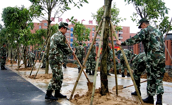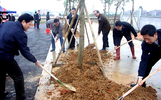 值“3.12”植树节到来之际,花都区领导云集我校大门前,举行了“花都区2012年义务植树活动暨‘三年绿化提升’工作启动仪式”。在区委杨雁文书记带领下,花都区委、区人大、区政府、区政协、区纪委五大部门的领导,花都区各局委办的领导,区人大代表,花都驻军指战员等500多人,出席了此次启动仪式。