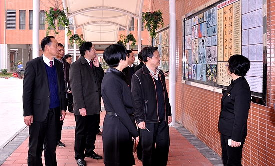 下午16:00,江东副局长一行来到学校,在我校梁润佳董事长、范小星执行校长、陈明星副校长、江楚桥副校长等领导的陪同下,参观了校园。各位领导先后视察了我校文化走廊、学生宿舍、食堂、体育场等,江副局长对我校浓郁的校园文化气息特别是宿舍文化建设很感兴趣,并赞赏我校在短短一个学期的时间里所取得的优异成绩,江副局长说:广州市黄广中学是一所能对花都乃至整个广州地区产生巨大影响力的学校,他对我校未来的发展充满信任和期待。