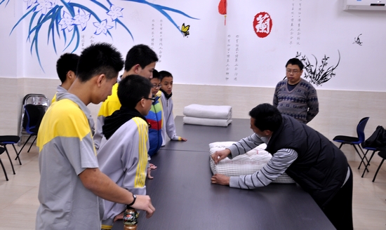 本周二(2月21日)和周四(2月23日)的生活技能课上,彭祖双老师、杨东升老师、孙洁姗老师教同学们折被子、叠衣服。在老师耐心指导下,同学们认真学习,被子、衣服叠得棱角分明、整洁美观。
