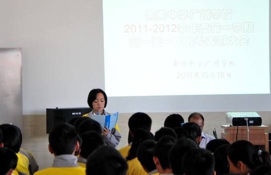 2011年10月18日下午,高一年级全体师生汇集一堂,举行了第一次月考表彰大会和学习经验交流会。学校领导游烈峰书记、范小星执行校长、陈明星副校长、江楚桥副校长出席了会议。