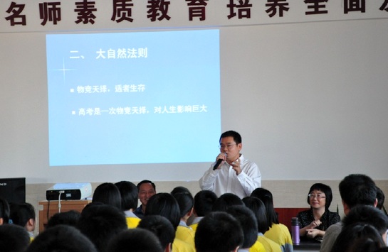 游书记激情澎湃地说,只有把握现在,才能把握未来。他给我们解读了“物竞天择,适者生存”的道理。他说,高考是人生的一次重要抉择,若不步步为营,将难以取得满意的成绩。游书记高一时的成绩并不理想,处于较低分的群体中。但他就是靠坚强的意志,合理的学习规划,朝着自己的梦想一点点的进步,最终考上了北京大学。游书记既是我们的榜样,又是我们的引领者。我们在他的鼓舞下,一定会不懈努力,在自己的求学道路上同样留下闪亮的足迹。