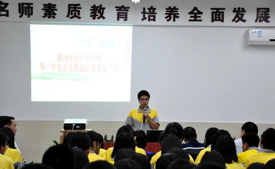 2011年10月16日晚,在学校领导和高中全体老师、同学们的见证下,我校高中部首届学生会主席、副主席的竞选活动在学校大会议室举行。