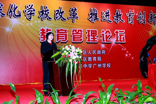论坛由花都区分管教育的张文兰副区长致开幕词,张副区长代表区政府对此次论坛的举办予以高度评价,并对学员们提出了希望。张副区长表示,如何通过改革和创新促进花都教育的发展,如何打造更具活力和特色的花都教育,是摆在我们面前迫切而重要的课题。本届论坛主题“深化学校改革,推进教育创新”与花都教育的实际状况和发展目标十分吻合,举办得也十分及时。她希望广大参会者汲取专家智慧融入到实际工作中,落实到学校和教育的发展上,为提高本校和本区域的教育工作质量和水平继续努力。