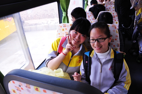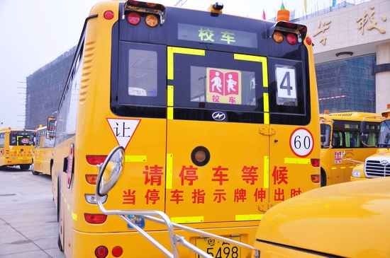 为保障同学们的乘车安全,我校本学期正式启用“国标”校车接送同学。