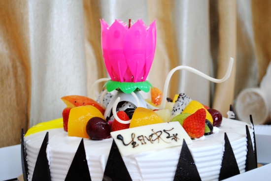 随着主持人陈静的一声“集体生日会开始”,副校长江楚桥宣读了寿星名单。随后,伴着《生日快乐》旋律的悠悠响起,由生活老师向寿星们敬献生日帽和鲜花,充满爱心的水果慕思蛋糕被缓缓推进桌台中央,摇曳的烛光也随之灵动地舞起来。寿星们面对烛光一起“唱生日歌、许下心愿、吹灭蜡烛”,并一起见证切蛋糕仪式。美味的蛋糕,喜庆的气氛,其乐融融。