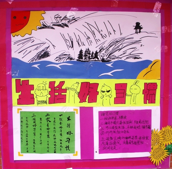 3月15日,生活老师对墙报进行了欣赏和评比,根据墙报的内容、版面、剪图和创意等几方面综合评价后,分别评出了一等奖三名、二等奖五名、三等奖八名。