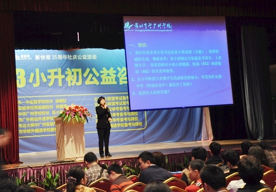编者按:开学以来,随着我校“家庭教育讲座”项目的启动,活动受到了来自社会各界的关注及家长热捧。本轮“家庭教育讲座”前期讲授团队由我校执行校长范小星以及校长助理孙传华、范小梁等组成。为了使家长和孩子们共同成长,系列讲座从当代家庭教育的热点问题入手,讲授内容生动翔实,不仅传授了先进的教育理念,同时给出了科学实用的方法及引导,深受家长们好评,所到之处,家长们纷纷表示,期待广州市黄广中学多多开展这样的讲座。本学期我校还将有多次讲座,敬请各位继续关注!