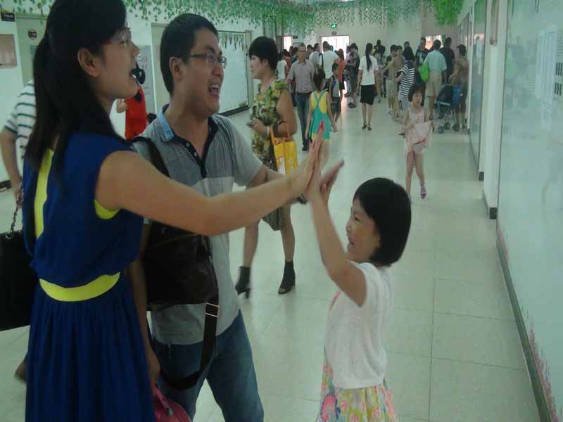 美丽的校园里,彩旗飘飘、喜气洋洋,“授人以渔”“快乐学习”“情商重于智商”“素质胜于成绩”等火红标语,既强化了喜庆的气氛,同时向广大学生和家长展示了学校的办学特色。