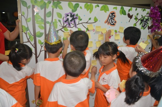 欢乐激情的游戏环节,将活动推向高潮。小寿星们伴随美妙的生日歌、点上生日蜡烛,孩子们纷纷在许愿墙上写下美好的愿望:“我想和爸爸妈妈一起看电影。”、“我想做飞行员”、“我想每天帮妈妈拖地”、“我想有一件公主裙”、“天天开心,学习很好,可以考出一个好成绩”.....
