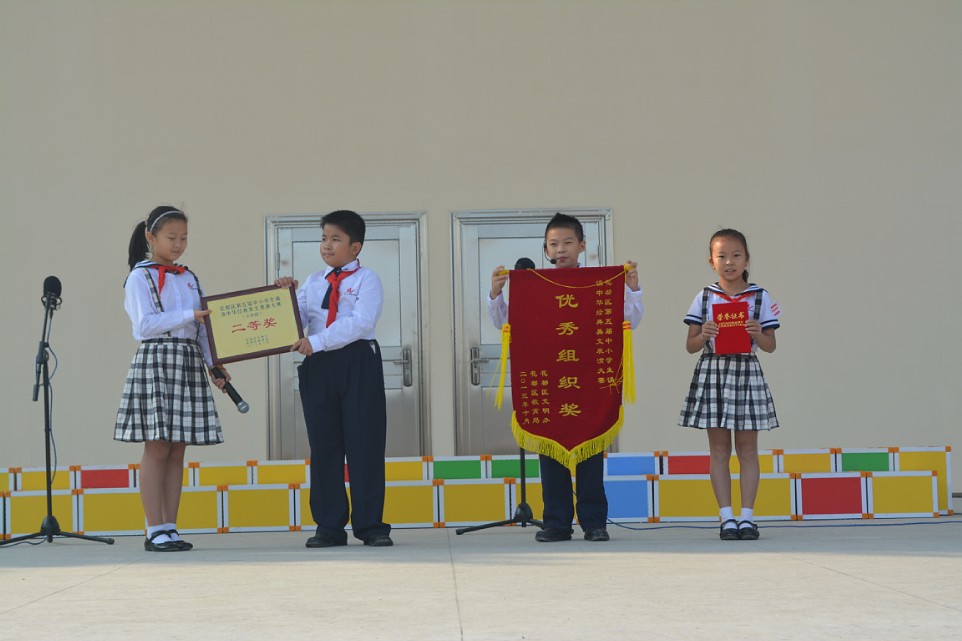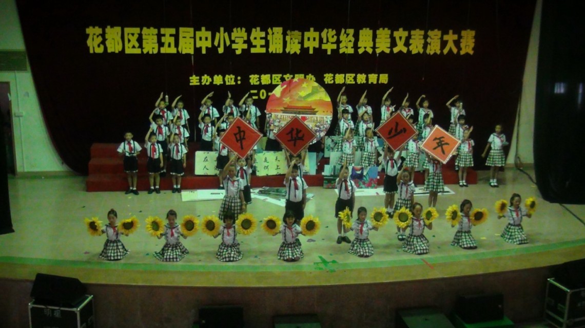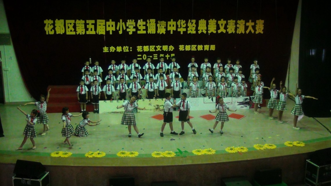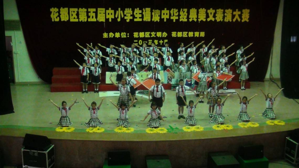 10月17日上午,花都区第五届中小学生诵读中华经典美文表演比赛在秀全中学隆重举行,全区12支公办、民办学校代表队参加了此次比赛。经过激烈角逐,金彩汇1068代表队朗诵的《中华少年》荣获二等奖,与冠军仅有0.4分之差。
