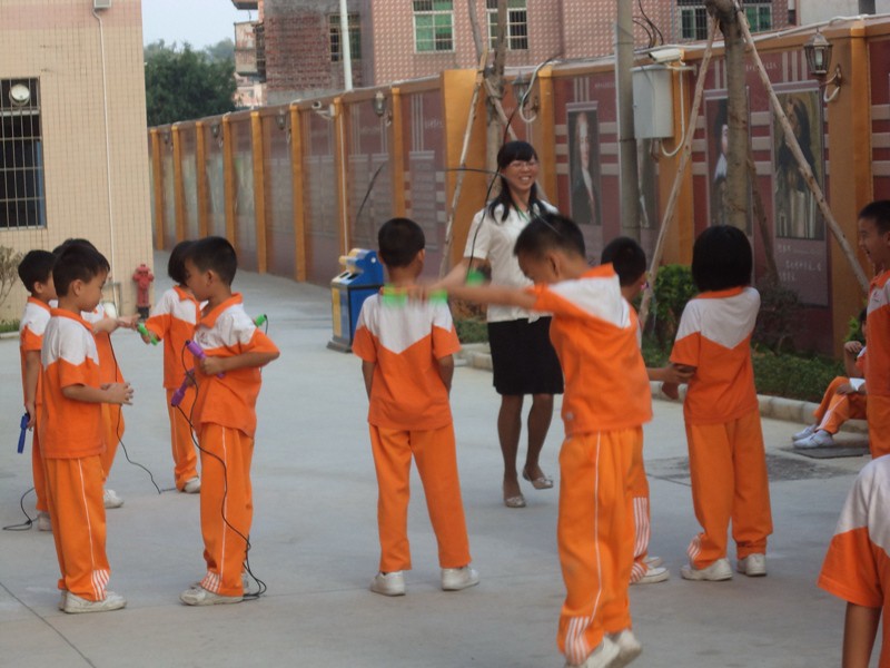 每天下午4:30起,校园开始沸腾。操场上有的班级在捉迷藏,有的班级在踢毽子,有的班级在转呼啦圈,有的班级在跳房子,项目各异,种类繁多。夕阳的余晖,洒在橙色跃动背影上,此时的校园格外美丽。现场笑声、呐喊声不绝于耳,一天的快乐尽在一跳一跃、一呼一应之间,校园里处处呈现师生同游戏、同欢愉的热闹场景。现代与传统、童年与今天、学生与教师此时找到最佳契合与共振。