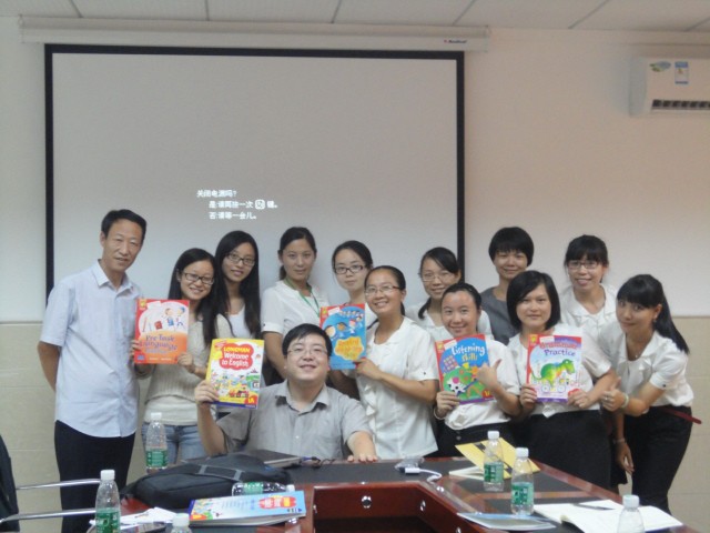 10月22日, 金彩汇1068举行第二次朗文教材使用培训。朗文教材使用专家刘老师从course-introduction and teaching reading两方面入手,指导教师如何正确、有效地使用教学策略,使老师教得有效,学生学得轻松。