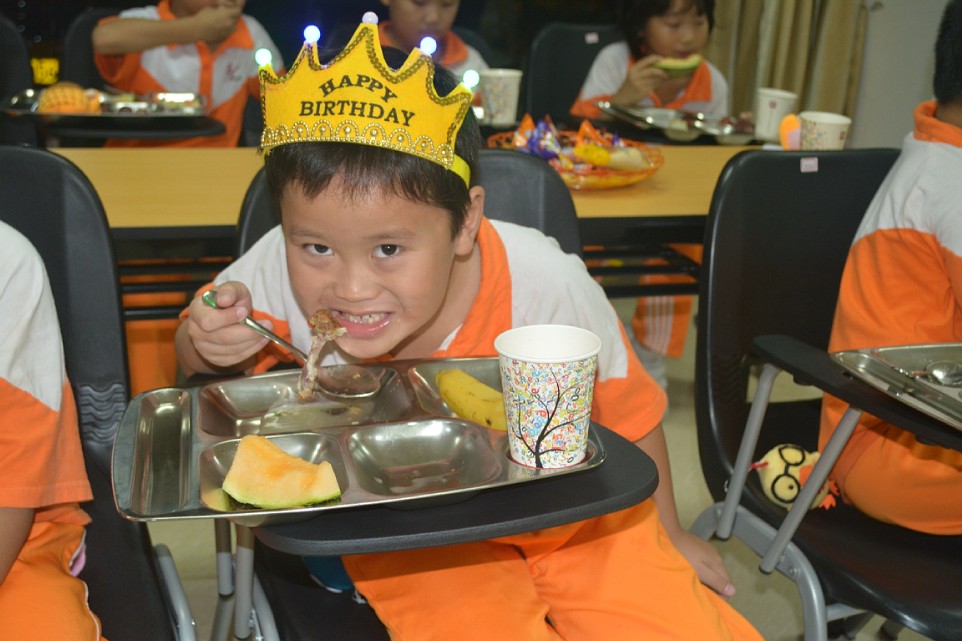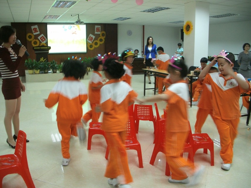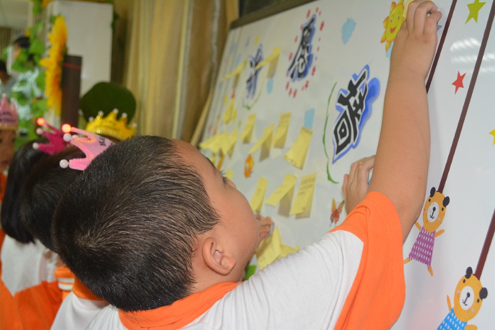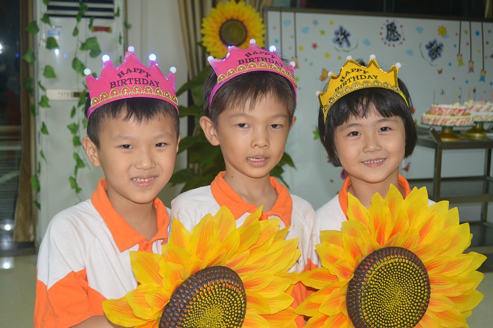当生日Party的主角——全体十月份出生的小寿星们怀着愉快的心情步入了早已布置一新的会场时,五彩的气球、缤纷的鲜花,还有丰富诱人的自助餐,香甜可口的蛋糕及精致可爱的小礼物,令孩子们眼前一亮,啧啧称奇。活动现场老师们亲手为孩子们制作了寿星帽,设计的精彩游戏让现场嗨翻了天,将活动推向高潮。“愿望树”上贴满了孩子纯真的梦想,最后一首《感恩的心》让活动情思绵长……