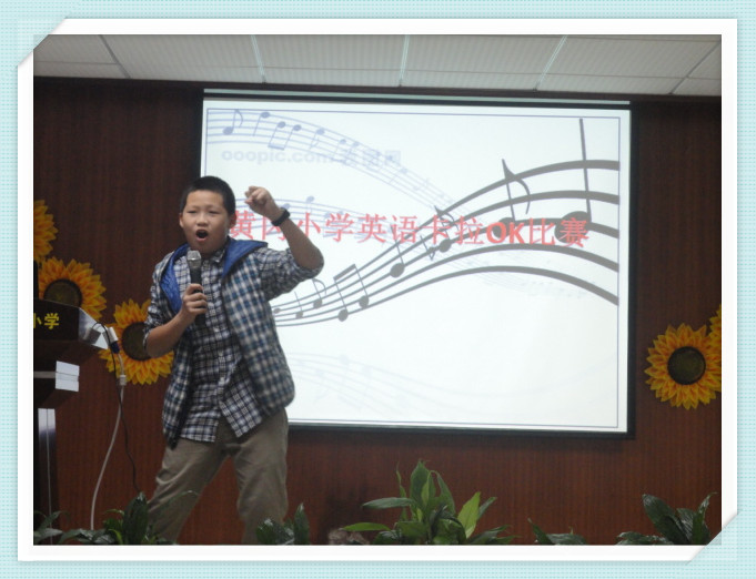 台上选手深情演唱,星味十足,台下掌声雷动,沉醉痴迷。2013年11月5日,来自六(1)班的曾俊林同学以强劲的舞台表现力,动情演唱的一首《New Divide》掀起了金彩汇1068首届英语卡拉OK大赛高潮,令评委老师和现场所有同学震撼不已。