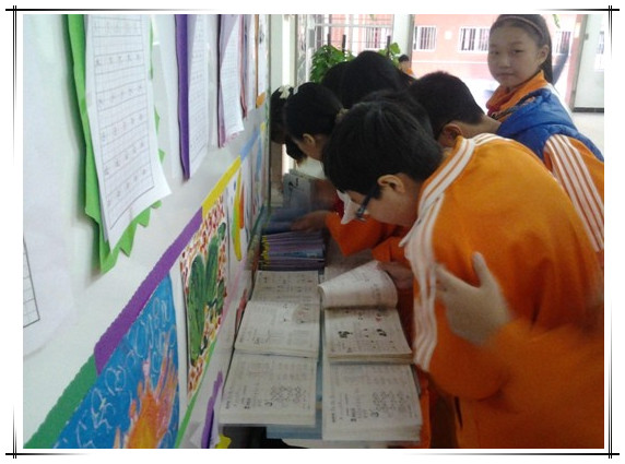 在参观中,同学们能积极找出他人作业中的优点,并与自己的作业进行比较,边观看边与周围同学进行讨论,特别是一年级小同学,看到大哥哥、大姐姐干净整洁、书写工整的作业本,啧啧称奇。
