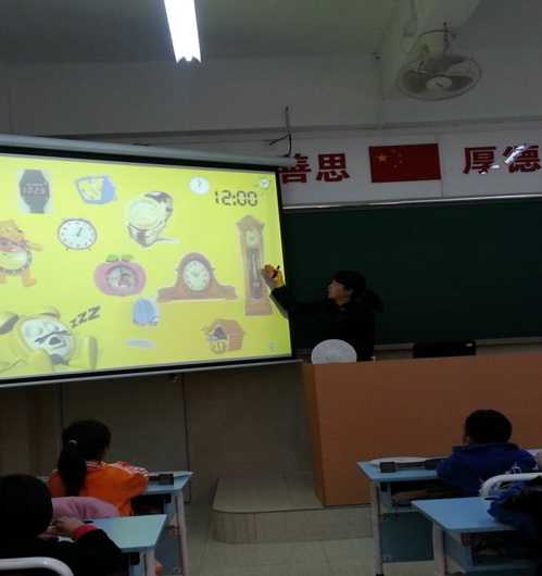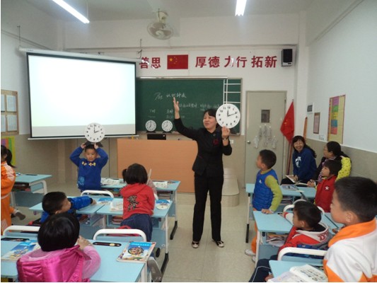 12月11日上午,黄广小学数学教师胡波执教的《认识钟表》数学公开课在一(12)班举行。
