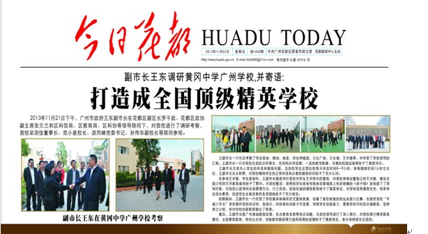 二、2013年,学校办学得到各级领导高度重视,学校影响力增强。(1)8月,花都区林中坚区长视察学校,指导学校建设和发展。(2)9月,广州市教育局党委华同旭书记、花都区委杨雁文书记、花都区人大邵靖副主任、花都区政协张文兰副主席、花都区教育局王良平局长、广东省少工委办公室徐仕宏副主任、培训中心毛湘玲教育长等领导莅临我校开学典礼现场并指导工作。 (3)区教育局王良平局长等领导先后视察学校,指导学校办学。