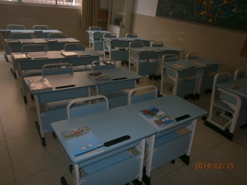 目前,教室整洁清爽,桌椅整齐,课桌上整齐摆放着崭新的课本,等待着学生高兴返校。