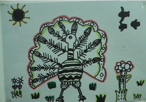 作者:一(15)班 刘嘉琪《美丽的孔雀》指导教师:胡继霞