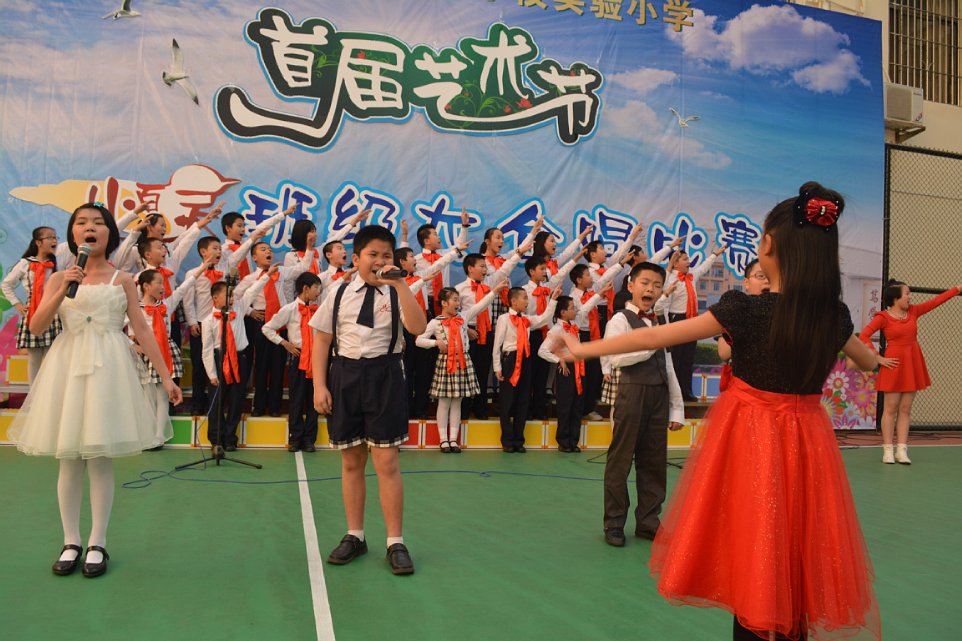 阳光明媚,歌声嘹亮。热烈的掌声伴随着童颜的笑脸,紧张的比赛伴随着必胜的信心,有序的赛场伴随着高涨的激情……