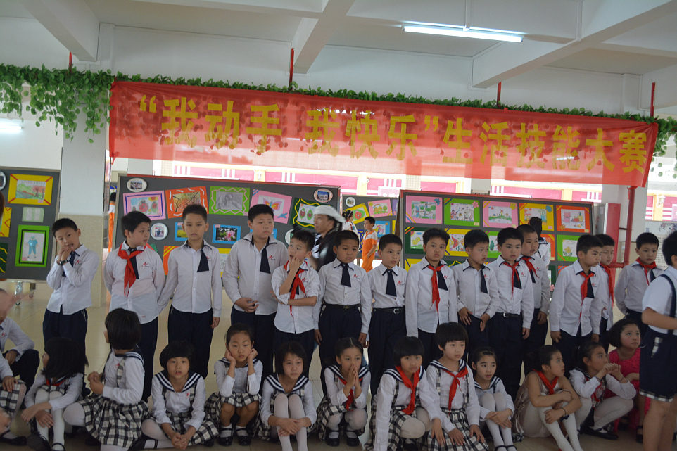 比赛以班级为单位,每班十二人参加,比赛项目有:整理书包、穿衣服、叠衣服、叠被子共四个项目。在整理书包比赛中,小选手们先把大小课本、作业本、分门别类地装进规定颜色的胶袋,装得整齐有序,且速度又快的同学获得名次。穿衣服环节中,小朋友们你追我赶,以最快的速度穿戴整齐;最有意思的是叠被子比赛,低年级两人一组,既考验他们的动手能力,同时考验他们的合作能力,两位选手齐动手,相互配合,在最短的时间内将被子叠成方块形。