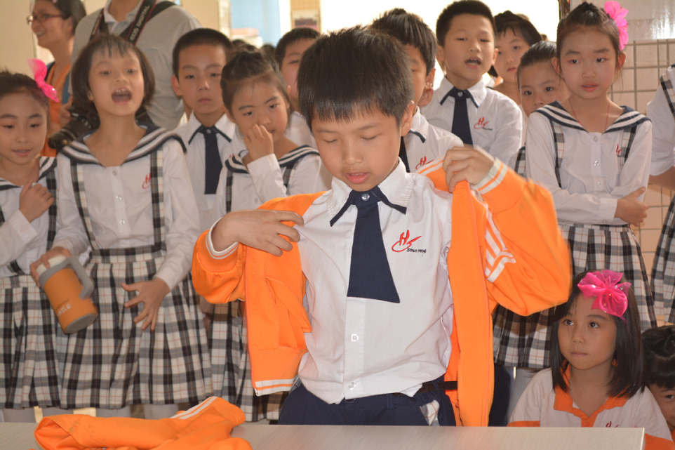小选手们个个神情专注,手脚利索,啦啦队也是呼声高涨,整个比赛现场的气氛紧张又激烈。最后二(1)班陈瑞琪,一(10)班蔡嘉旭同学获得整理书包一等奖,一(7)班骆锦荣、一(10)班凌嘉慧、一(15)班李柔柔获得穿衣比赛一等奖,一(2)班谢梓健、何子阳,一(4)班张静仪、刘媛婷获得叠被子一等奖。