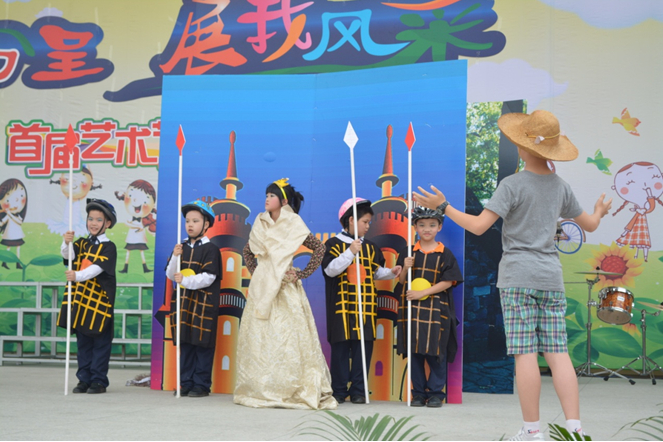 闭幕式文艺演出的过程中,穿插了颁奖仪式,表彰了此次艺术节分会场比赛中涌现出的先进个人、集体,并对其展示的精品节目集中展示。一(12)班王铎中、一(11)班徐翊伦、一(3)林玥同学同台展示的爵士鼓演奏,以奋进的鼓点,将活动推向高潮。四(1)班在“小百灵”班级大合唱比赛荣获一等奖作品《春晓》,将学校国学与艺体特色融为一体,将首届校园文化艺术节划上圆满句号。