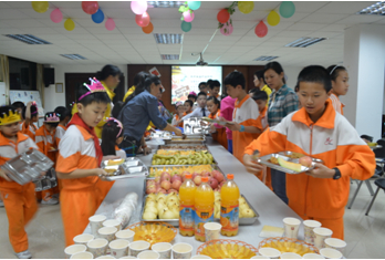 最后,寿星们合唱一首《感恩的心》吐露了他们的心声,同学们在悠扬的音乐声中,唱着生日歌,捧着生日礼物,品味着美味自助餐,感恩父母,感恩生命,感恩师长,感恩社会……