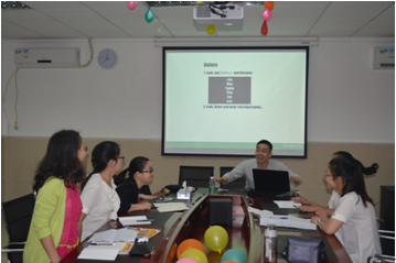 2014年5月13日, 金彩汇1068英语科组教师,举行朗文教材使用的第四期培训。本次莅临我校指导交流的专家是Doctor.Rock,交流主题是Teaching Phonics(自然拼读法) with LWTE。