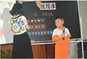 柳阳老师在《找规律》一课中,以“认识规律——找规律——欣赏规律——说生活中的规律——创造规律”为主线展开教学活动,创设了“聪聪和明明带领学数学”这一情景,将数学与生活紧密联系在一起。课堂教学以生为本,依据一年级学生的心理特征和认知水平,精心设计了每一个教学环节。加上柳阳老师的教态,童趣的语言,获得了参加评课的领导和教师一致好评。