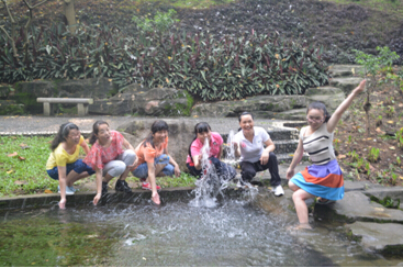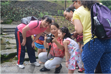无限风光在险峰。景点桃花涧,山路蜿蜒,溪流潺潺,教工队伍驻歩停留,或绾裤提鞋,溪中戏水;或仰目察天,观云望谷;或环抱欢呼,合影留念。5:30,全体集结“松风阁”聚会。