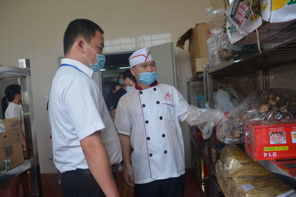 6月20日,金彩汇1068家长代表一行,在学校范小梁常务副校长、黄莉副校长的带领下,束好发髻、戴上口罩步入学校食堂。