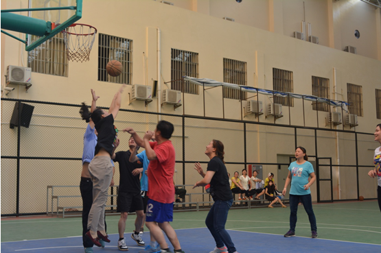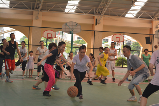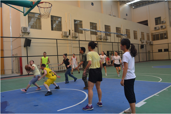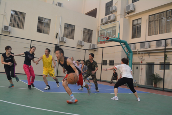 7月6日下午4:30,金彩汇1068行政后勤组与语文教师组展开的男女混合篮球赛激烈进行,拉开假前教职工趣味篮球赛活动的序幕。