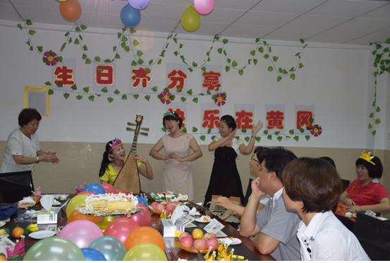 吃完蛋糕,游戏开始。一阵阵爽朗的笑声、情不自禁的高歌舞蹈,寿星们尽情释放自己的情怀。