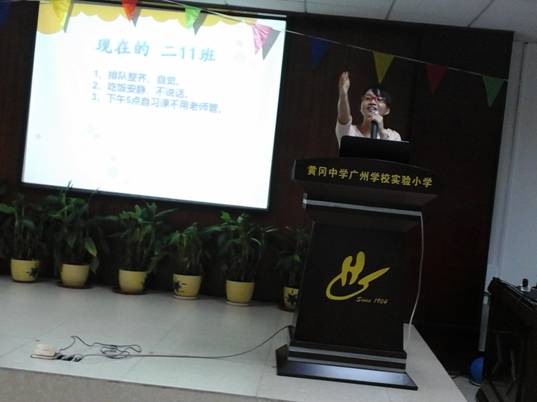 来自高年级曾健华老师分享了“制度管人”在班级管理的具体落实;李艳秋老师谈巧妙地处理家校关系的语言艺术。