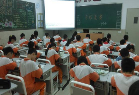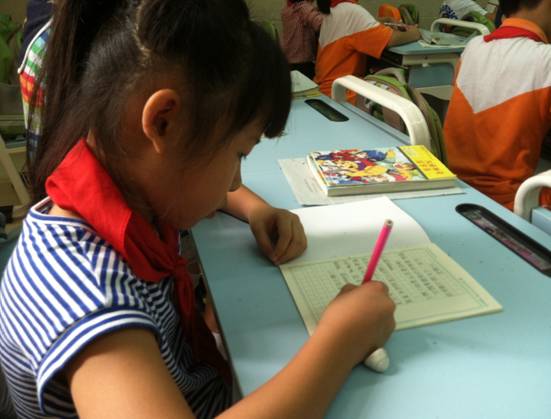 比赛现场孩子们表现出极大的热情:坐姿端正、握笔正确,认真思考,想象丰富,构思奇妙。赛后,从内容,结构,书写三个方面进行评比。