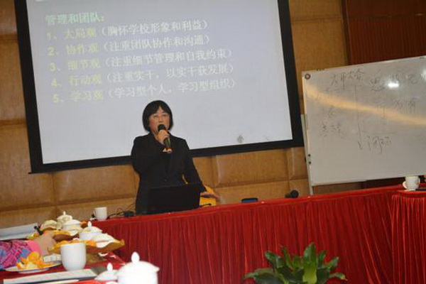 会上,游烈峰书记以学校二次创业为契机,结合办学三年来成功实践经验,以“提升能力、强化责任——建立负责、团结、专业、智慧的一流管理团队”为题,分享了学校二次创业、建设全国顶级精英智慧型学校的路线图,以“智慧”为核心,全面梳理了学校管理思想、办学原则、教育理论、教学理念、教育范围、教育方法、教育重点、德育模式、服务体验、培养目标等涵盖学校智慧教育体系的重要宝贵经验。