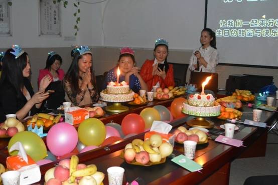 黄广小学小会议室灯火辉煌,歌声荡漾,十一月教职工集体生日会缓缓拉开帷幕。