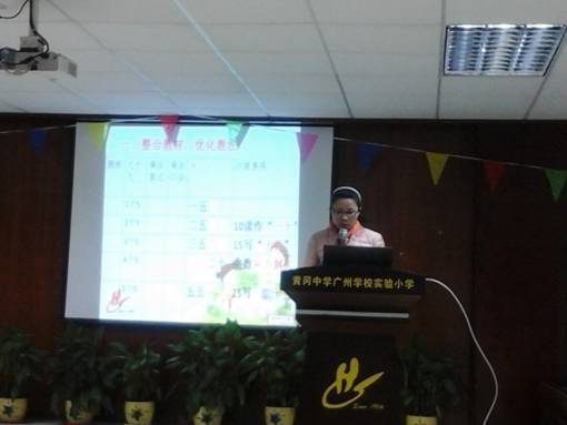 数学科组的朱美平老师以“付出信任,收获佳绩”为题阐述了她为打造智慧课堂而采取的整合教材、优化方法一系列做法,如在课堂里采用多样化的汇报、多样化的评比,让复杂解题步骤简单化等。