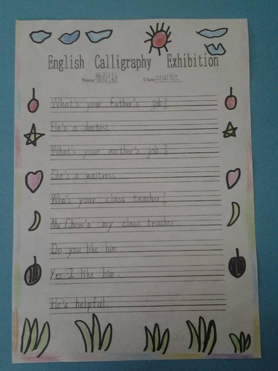 活动以班级为单位,全员参与。孩子们认真构思、精心制作,精美的图案、工整的文字、巧妙的构思,展现了孩子们的艺术才能,丰富了孩子们的英语知识,提高他们的动手创造及审美能力。
