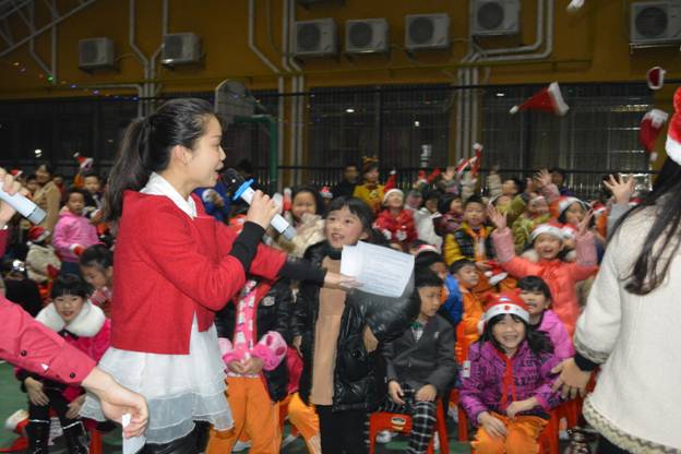 黛绿发光的圣诞树、红白相间的圣诞帽、慈祥和蔼的圣诞老人、琳琅满目的圣诞礼物、全场师生尽情释放的热情……构筑了一个美丽的圣诞狂欢夜。