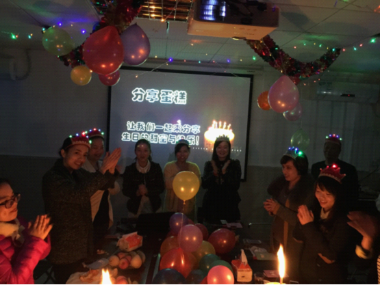 随后,学校领导们向大家送生日贺卡和鲜花、蛋糕,送给大家一份浓浓的情意、深深的祝福。精彩纷呈的节目陆续登场,教职工们开始了载歌载舞。