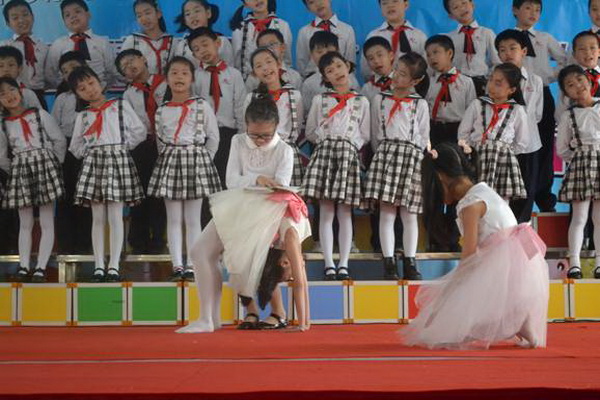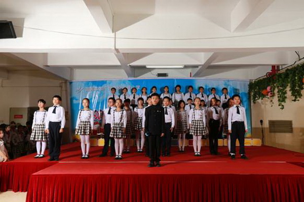 “少年智则国智,少年富则国富,少年强则国强……”五(2)班的孩子们伴随着铿锵有力的音韵,时而卧倒、时而跃起;时而挺拔如峰,时而行云流水,孩子们通过抑扬顿挫的声调,将梁启超的《少年中国说》演绎得淋漓尽致,赢得台下的观众阵阵喝彩。