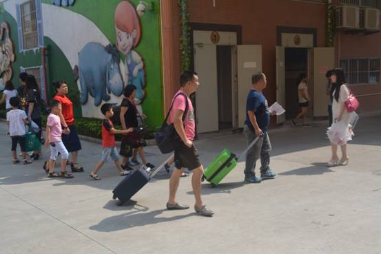 家长拿着报到转单,按照流程指引为孩子做好一切开学准备。