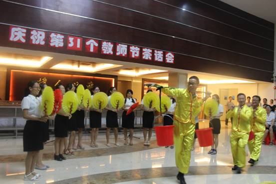 9月10号,在第31个教师节到来之际,黄广小学全体教师在综合楼大厅举办了一场别开生面茶话会,全体教师载歌载舞,以独特的方式庆祝属于自己的节日。