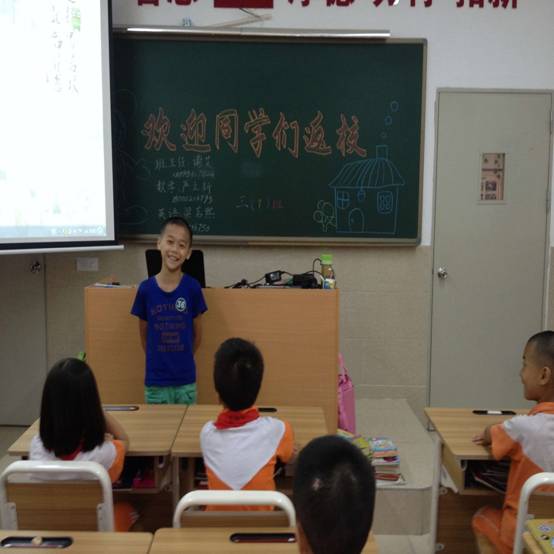 大家好!我是三(7)班的陈~。今天是开学的日子,这里让我等了一个暑假,因为我很想来到黄广小学读书。现在我正在介绍自己呢,三(7)的同学都以热烈的掌声欢迎我加入这个大家庭,我非常感动,非常开心,我要和大家都成为好朋友,以后要更加努力地学习!