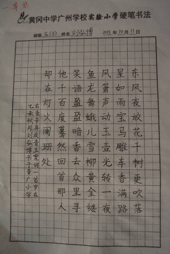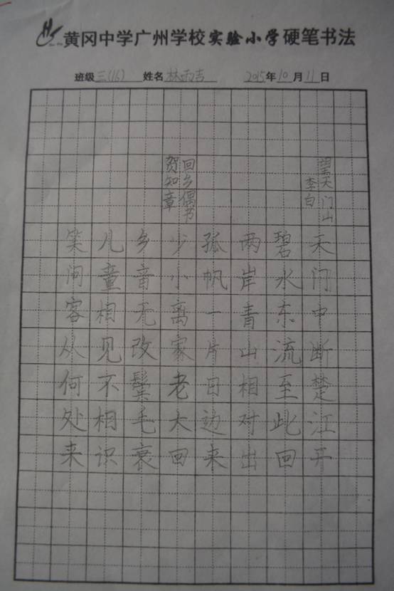 虽然小手稚嫩,但是写出的作品有模有样。