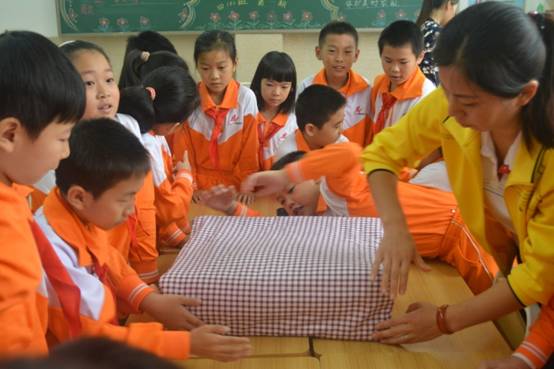 生活老师把被子、衣服带到课堂上,手把手教孩子们叠被子和衣服。
